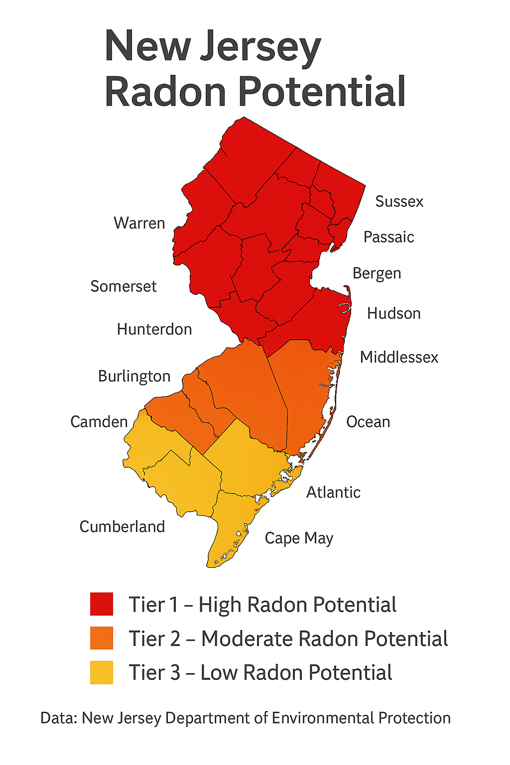 New Jersey has some of the highest radon levels in the country, with many areas exceeding EPA recommended action levels. The good news? Testing is simple, and if elevated levels are found, mitigation systems are highly effective at reducing radon concentrations.