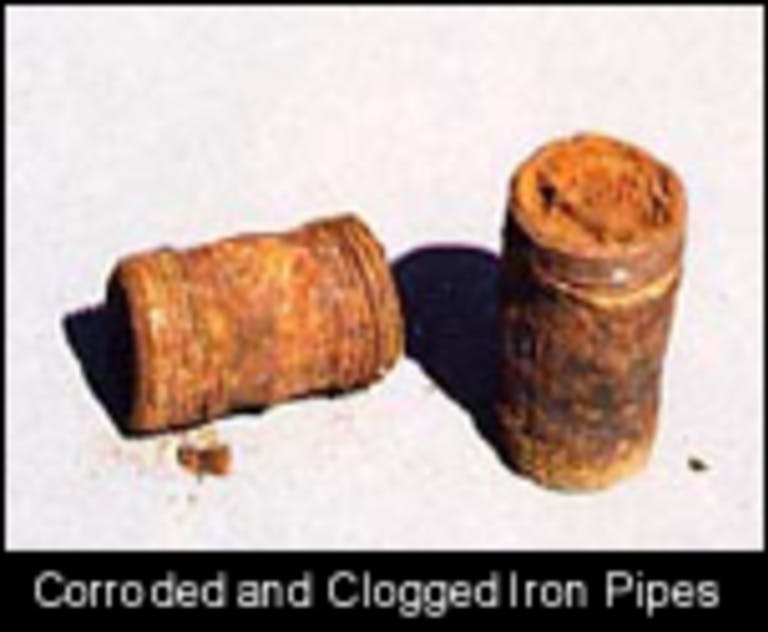 Iron is a common element, constituting nearly 5% of the earth’s crust. Iron can be present in water due to a number of reasons. Acid rain, particularly acidic or basic water, and other chemical factors in water can corrode iron pipes and leach iron into the water. Also, high velocity water and sediment in water can erode iron from pipes into the water. When exposed to air, heat, or chlorine, these iron compounds will form rust, which will stain virtually anything that the water comes in contact with. This can cause extensive damage to faucets and appliances as well as dishes, clothing, and other personal belongings that come in contact with the contaminated water.